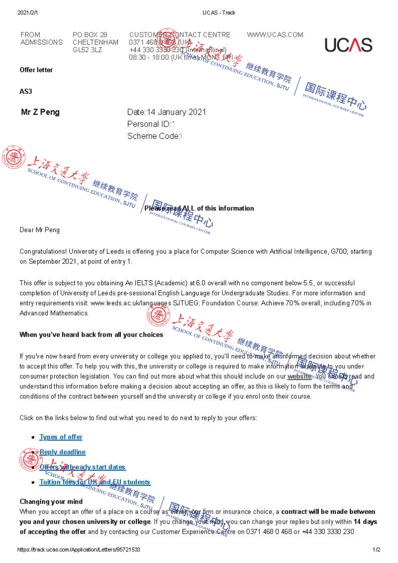 Offer:曼彻斯特大学、杜伦大学、伯明翰大学、利兹大学、爱丁堡大学